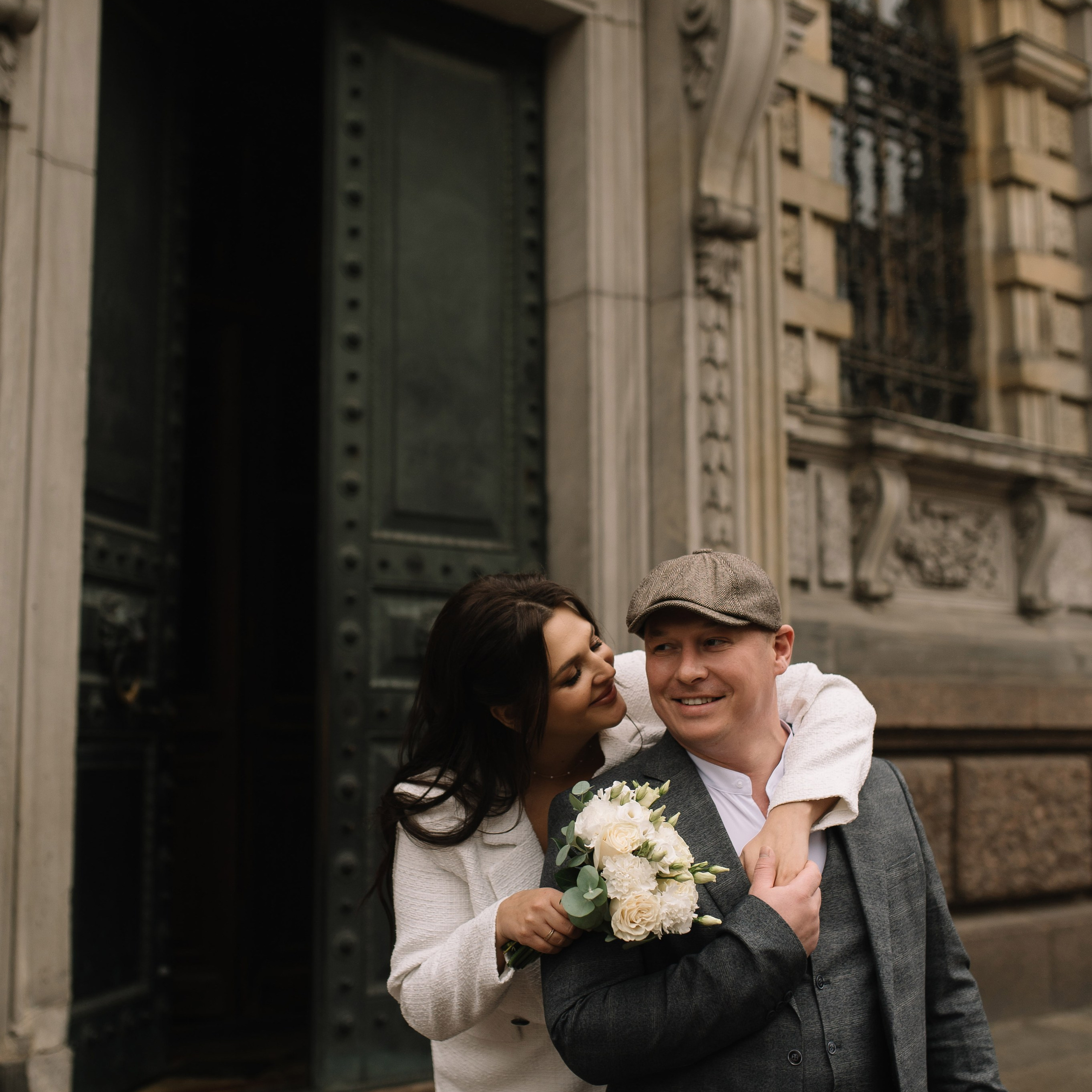 Время для съёмки с гостями обычно внутри и возле ЗАГСа. Остальное время (сборы, прогулка) — это время для пары, где вам никто не будет мешать эмоционально включиться в процесс. Вы можете пригласить 1-2 близких людей для помощи с вещами и перемещением между локациями.